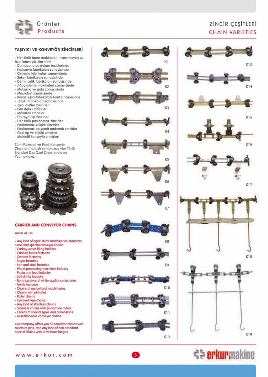 Konveyör zincir gergi sistemi yaylı veya vidalı olarak yapılmaktadır.